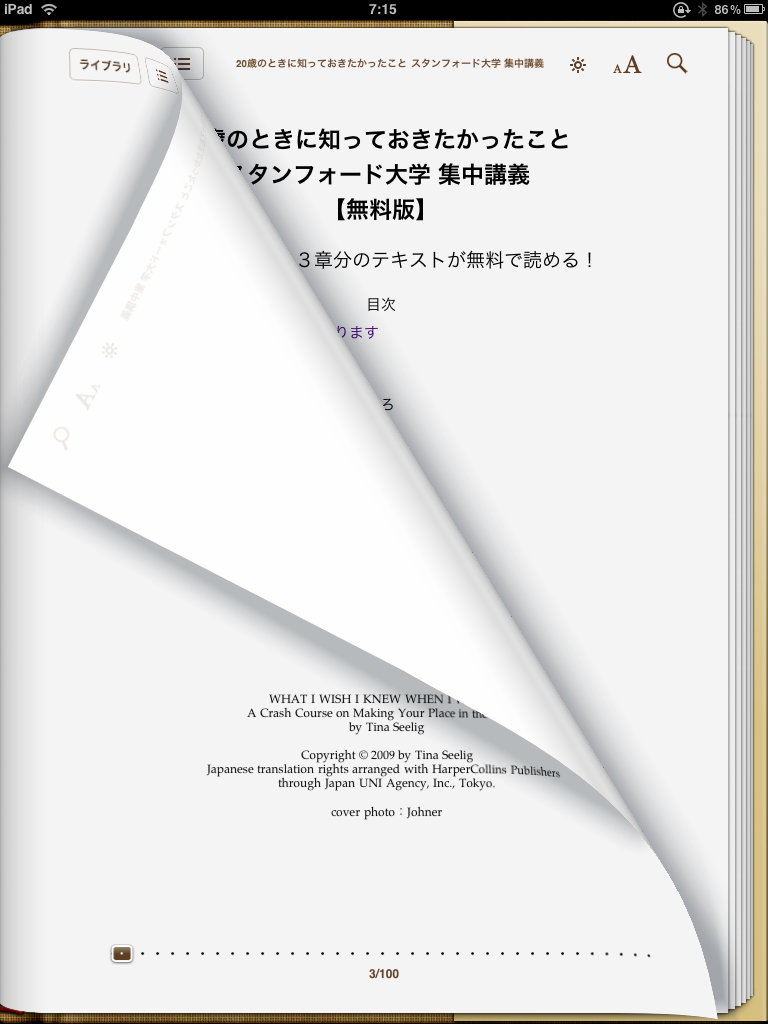 電子書籍(ePubファイル)無料ダウンロードキャンペーン「20歳のときに知っておきたかったこと スタンフォード大学 集中講義」| e-days「イーデイス」それぞれ無料で入手可能です。iPadをお持ちの方は是非お試しを。