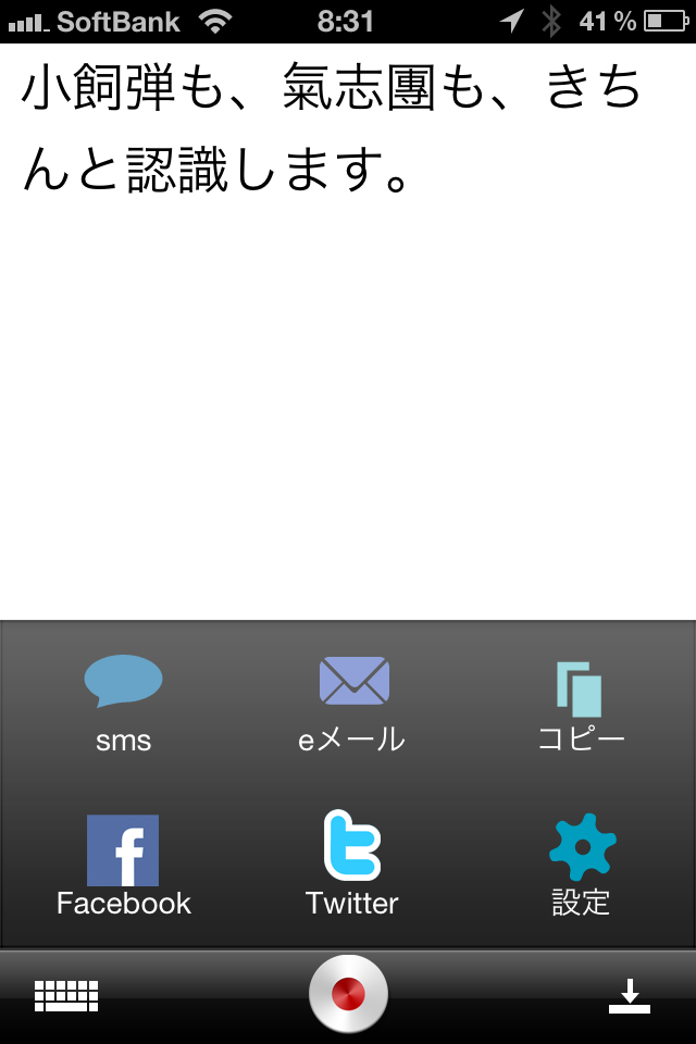 もうiPhoneのソフトウェアキーボード使わなくていいんだ(涙) 85円の音声入力appが凄いの件 | More Access,More Fun!このアプリ。使い方はとても簡単で、音声を認識しテキストにしてくれる。ここで「クラウド」というのがミソで、いままでのデバイスは本体のCPUで変換するものだったから使えなかったが、こちらはクラウド。つまりサーバに送ってそこで変換しているのだ。Siriと同じ理屈です